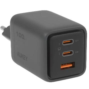 Aukey PA-C5 — более компактный, но не менее универсальный вариант. Здесь три порта (два USB-C и один USB-A) и поддержка быстрой зарядки до 100 Вт при максимальном напряжении до 21 В. Этого вполне хватает для современных ультрабуков.