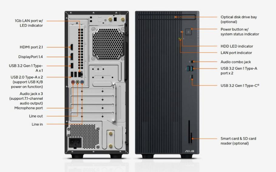 В набор интерфейсов новинки входят три разъёма USB 3.2 Gen 1 Type-A, два USB 2.0 Type-A, один USB 3.2 Gen 1 Type-C, а также HDMI 2.1, DisplayPort 1.4, Ethernet, аудиовыходы и слот для карт памяти SD. Для накопителей предусмотрен 3,5-дюймовый отсек и слот M.2 (PCIe 4.0).
