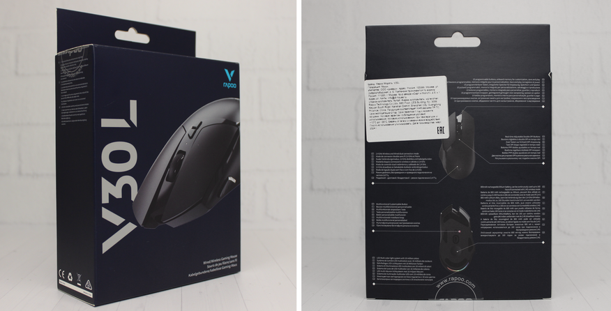 На задней стороне коробки на 9 языках описаны основные особенности мышки.