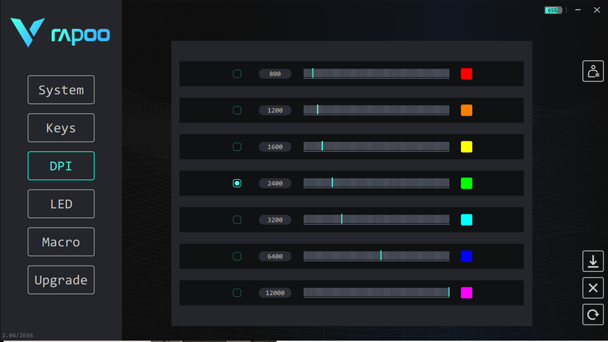 Чтобы открыть для себя все возможности мышки нужно скачать специальное приложение-драйвер с официального сайта компании RAPOO (Переходим в Поддержка -> Скачать драйвера -> Игровая мышь V30L/V30W (включая сопряжение с беспроводным приемником мыши)).