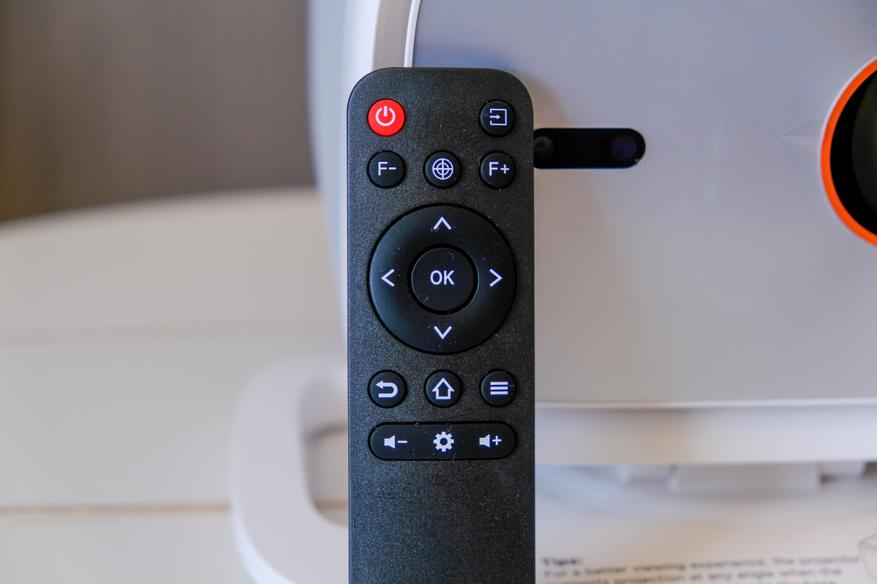 Кнопок для управления проектором на корпусе не нашлось. Вот это минус конечно, придется либо всегда пользоваться пультом, либо подключать мышку к единственному USB порту. Но тут опять смотрим на цену и понимаем, что снова придираемся к обычному бюджетному проектору. Так что ну как есть, будем пользоваться.