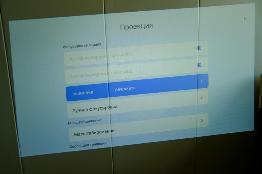 Если проектор сдвигается, сильно шевелится или поворачивается, то он сам тут проверяет и делает автофокусировку (можно это в настройках настроить). Также если кажется что изображение сфокусированно не очень правильно, можно одной кнопкой с пульта перефокусировать. Либо откорректировать. Ну и сама фокусировка длится около 2-3 секунд. Что быстро, и на мой взгляд работает отлично. Ошибки с фокусом были всего несколько раз, и только тогда, когда я еще не подогнал масштаб и часть изображения уходило на боковые стены и потолок.