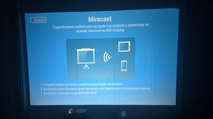 Есть и встроенный Miracast. При подключении к одной сети, можно спокойно транслировать на проектор с экрана смартфона, планшета или Windows ноутбука (проверено, работает адекватно)