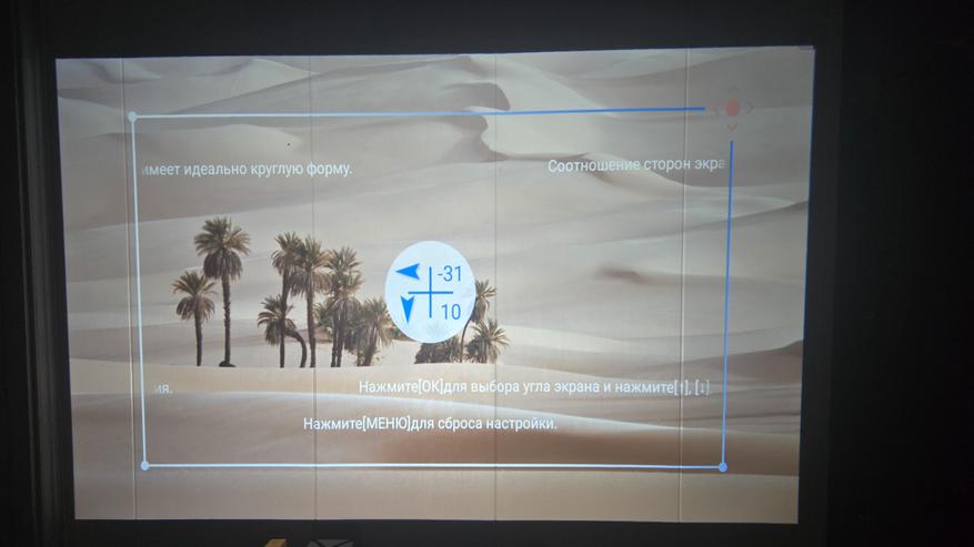 Что касается трапеции и искажений, то здесь также всё можно настроить. Есть как автоматическая коррекция трапеции, так и ручная. Я лично предпочитаю ручную, потому что автоматическая бывает не совсем удеально подгоняет углы.